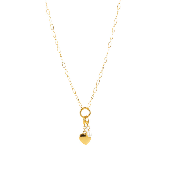 Il se compose d'une jolie chaîne dorée en acier inoxydable avec un charm cœur et une perle naturelle qui pendent avec délicatesse. C'est le détail qu'il faut pour apporter une note de tendresse à n'importe quelle tenue.